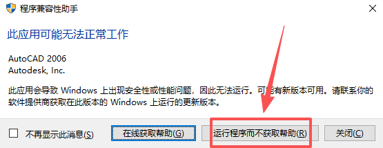 14、点击【运行程序而不获取帮助】。