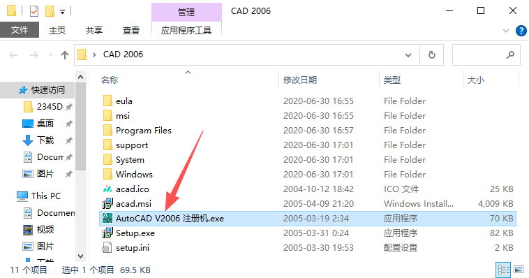 17、双击运行【AutoCAD V2006 注册机】文件。