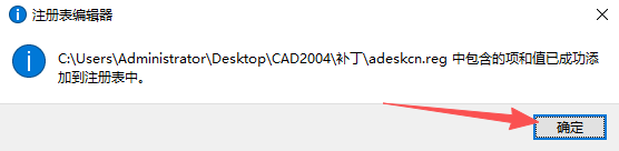 13、双击运行【补丁】文件夹下的【adeskcn.reg】文件,点击【是】。