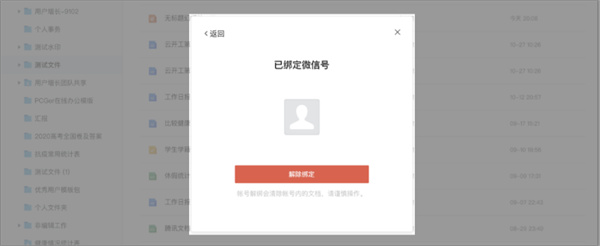 ③绑定后进行帐号解绑,被解除绑定帐号里之前存放的文档,将被清空,但可以通过登录之前绑定的QQ/微信帐号,在文档列表进行查找。