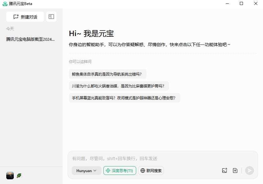 腾讯元宝电脑版,作为腾讯公司精心打造的多功能智能AI助手,依托于公司自研的顶尖大模型T1和DeepSeek R1,具备跨知识领域的广泛理解和强大的自然语言处理能力。这款应用凭借其卓越的AI技术,在办公、学习、创作以及日常生活等多个方面为用户提供了高效便捷的服务。它不仅精通中文理解,还擅长逻辑推理和任务执行,能够准确解答用户的疑问,帮助用户轻松获取所需信息。