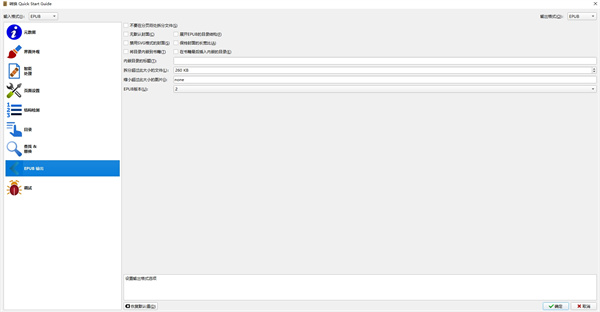 3、进入到calibre逐个转换页面,如下图所示,在界面上方有输入格式和输出格式选项,你可以在输出格式中选择一个想要转换的格式,如图二中所示,有多种的输出格式可以选择。然后在界面的右侧会有一列的功能选项,你也可以进行选择设置。