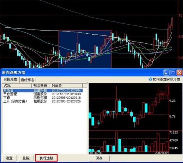 5、选择形态保存后,可添加实际形态,并进行选股