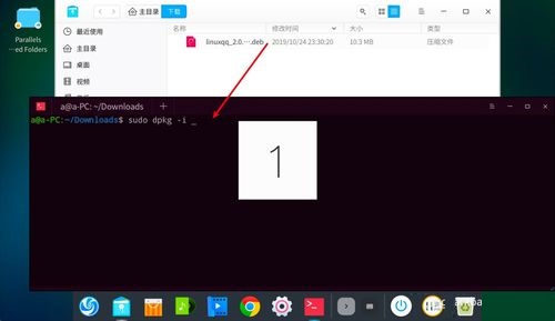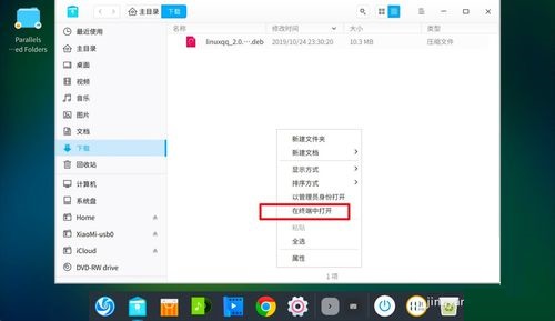 2、如果双击无法安装,即可通过右键在终端中打开,输入命令:【sudo dpkg -i】。