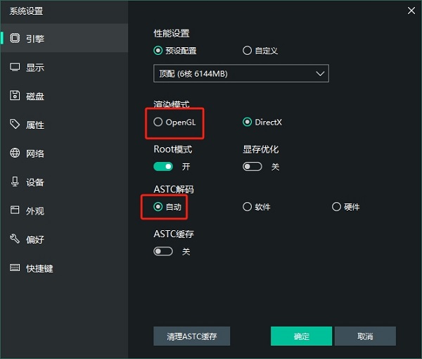 3、将【渲染模式】和【ASTC解码】选项勾选上。