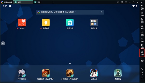 1、进入逍遥模拟器的主页面,点击右侧的【设置】选项。