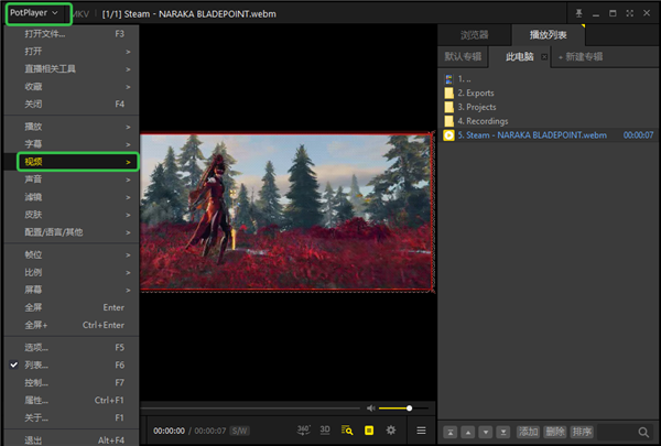 1、打开PotPlayer绿色版,打开需要处理的视频文件。