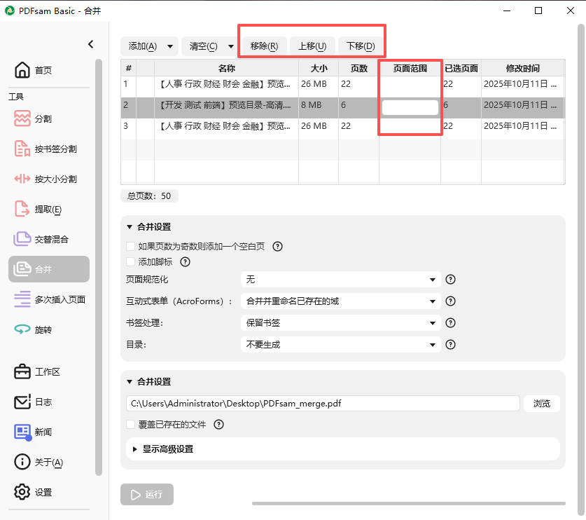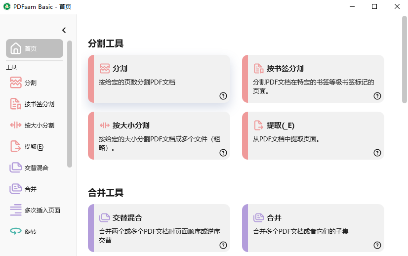 合并是最常用的PDFsam Basic功能,它让您将PDF文件结合在一起。
