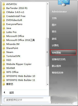 1、通过开始菜单,找到控制面板。