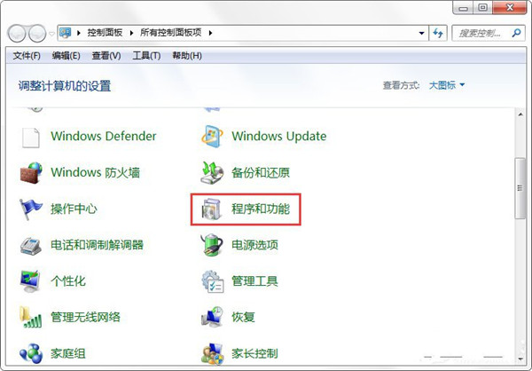 2、在控制面板中选择“程序和功能”。